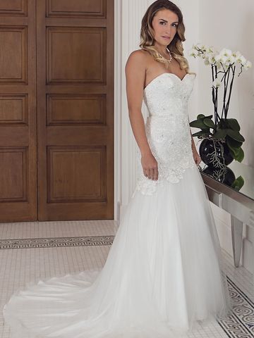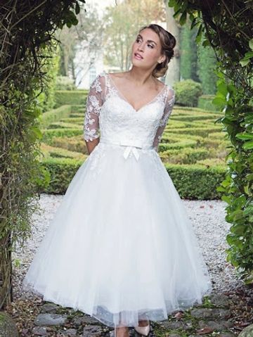 * All Designers work to their own size charts we, therefore, recommend that you measure yourself and read our 'Could Fit' notes in the description of each dress. As a general rule, we expect our Designers Wedding gowns to be wearable/alterable 1 size up from your current measurements, and down 2 sizes (before things end up in the wrong place!) If in doubt, please call or book an appointment for expert advice.